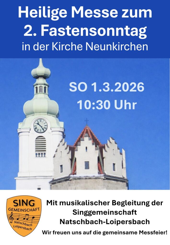 Am Sonntag, d. 1. März 2026 laden wir herzlich zur Heiligen Messe um 10:30 Uhr in die Kirche Neunkirchen ein.